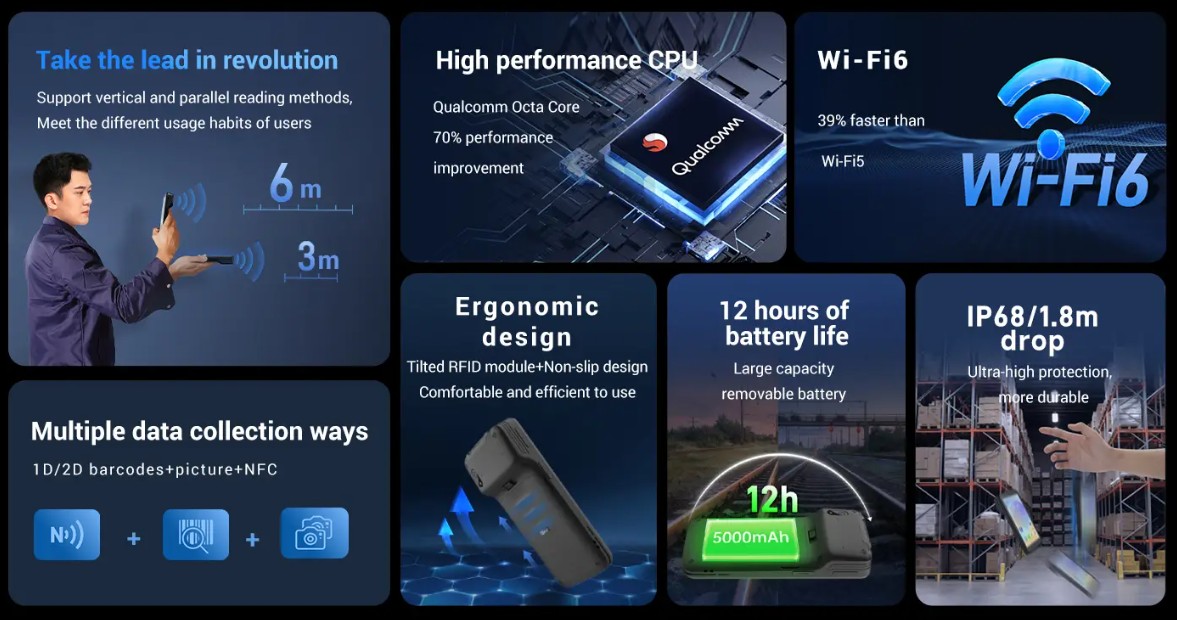 - Reading Distance: Back Scan≥6m, Front Scan≥3m @ 9662 white card (actual distance is affected by the label and environment)